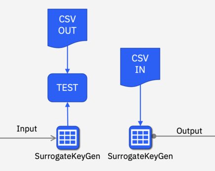 Surrogate Key Generators are backed by a Database or a Flat File and will produce output records which are not deterministic. The use of a Database-backed Surrogate Key Generator will also require a live connection to an external Database which is not ideal for unit testing. To unit test flow designs containing this type of surrogate key generator, the surrogate key generator stage needs to be removed from the flow and replaced with test case data. This is done by adding the input link in the then
