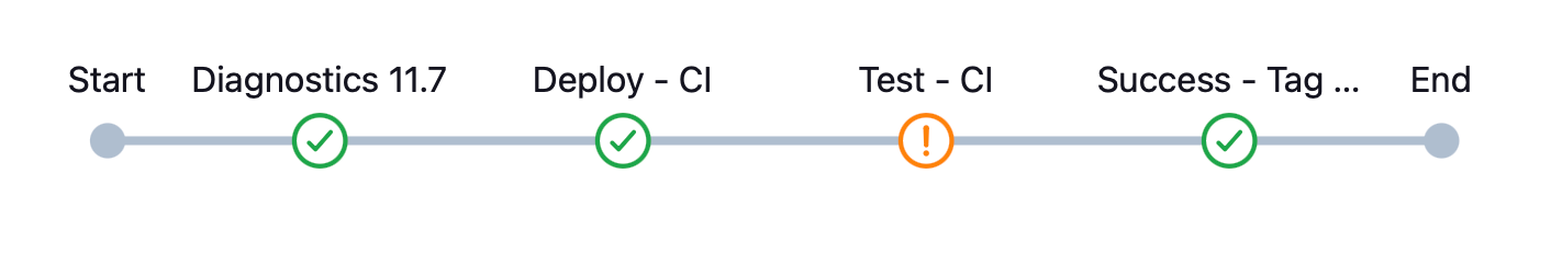 1 | Tag current build | various | Adds a tag to the commit that triggered the successful build, thereby identifying it as a candidate for deployment into the next environment. i.e: if the current run successfully deployed a ci-xxx tag into QA , the commit the tag was related to also receives a qa-xxx tag, identifying it as a potential candidate for deployment into the PERF environment. |