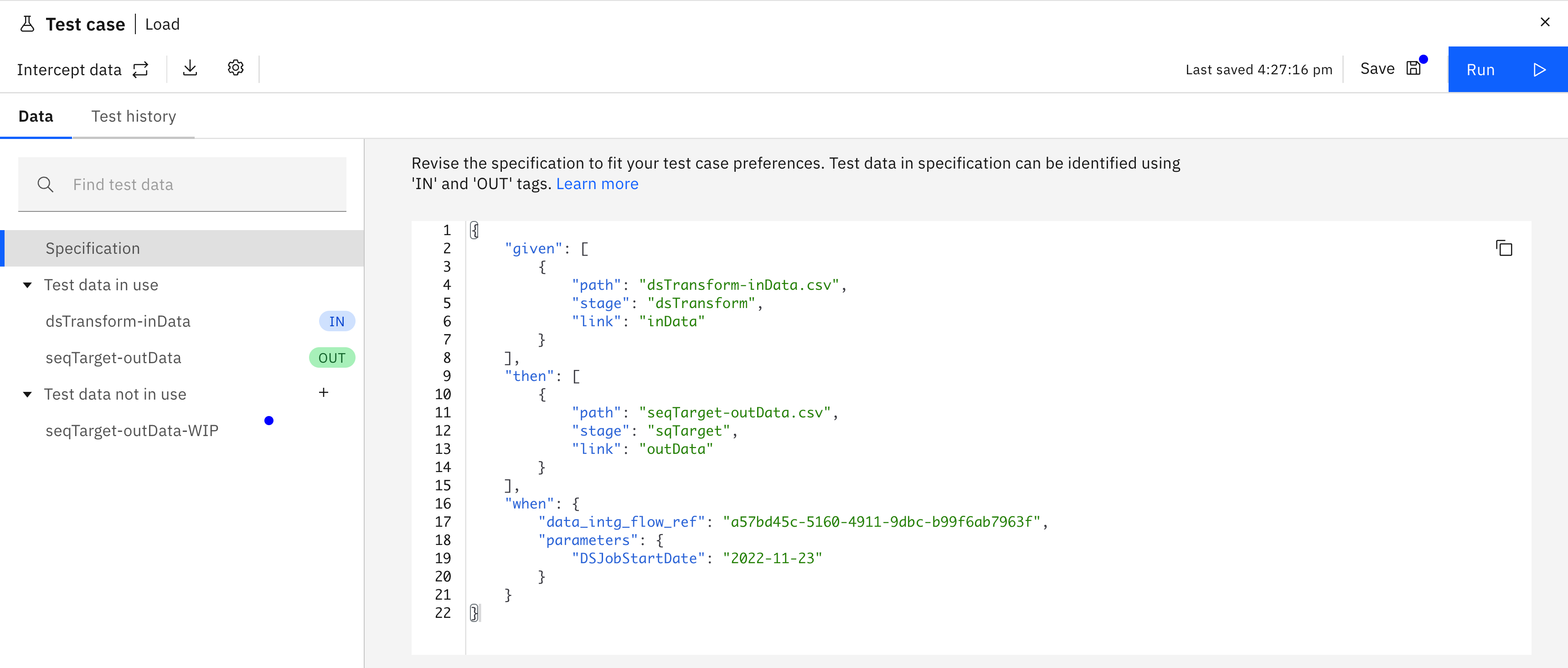 - Open an existing project then open the Assets tab and under the Asset types panel select DataStage components > Test cases from where you can click the name of the test case you wish to edit.